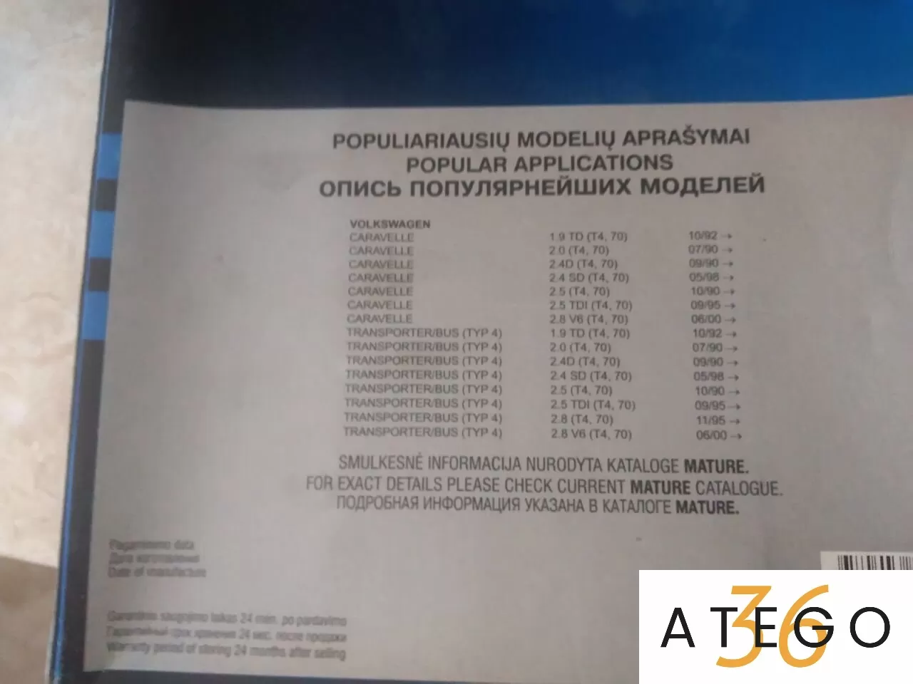 Пpименениe на VW Trаnsрortеr IV 1.9-2.8/D/TDI/VR6 09/90-04/03, Caravella!!!!